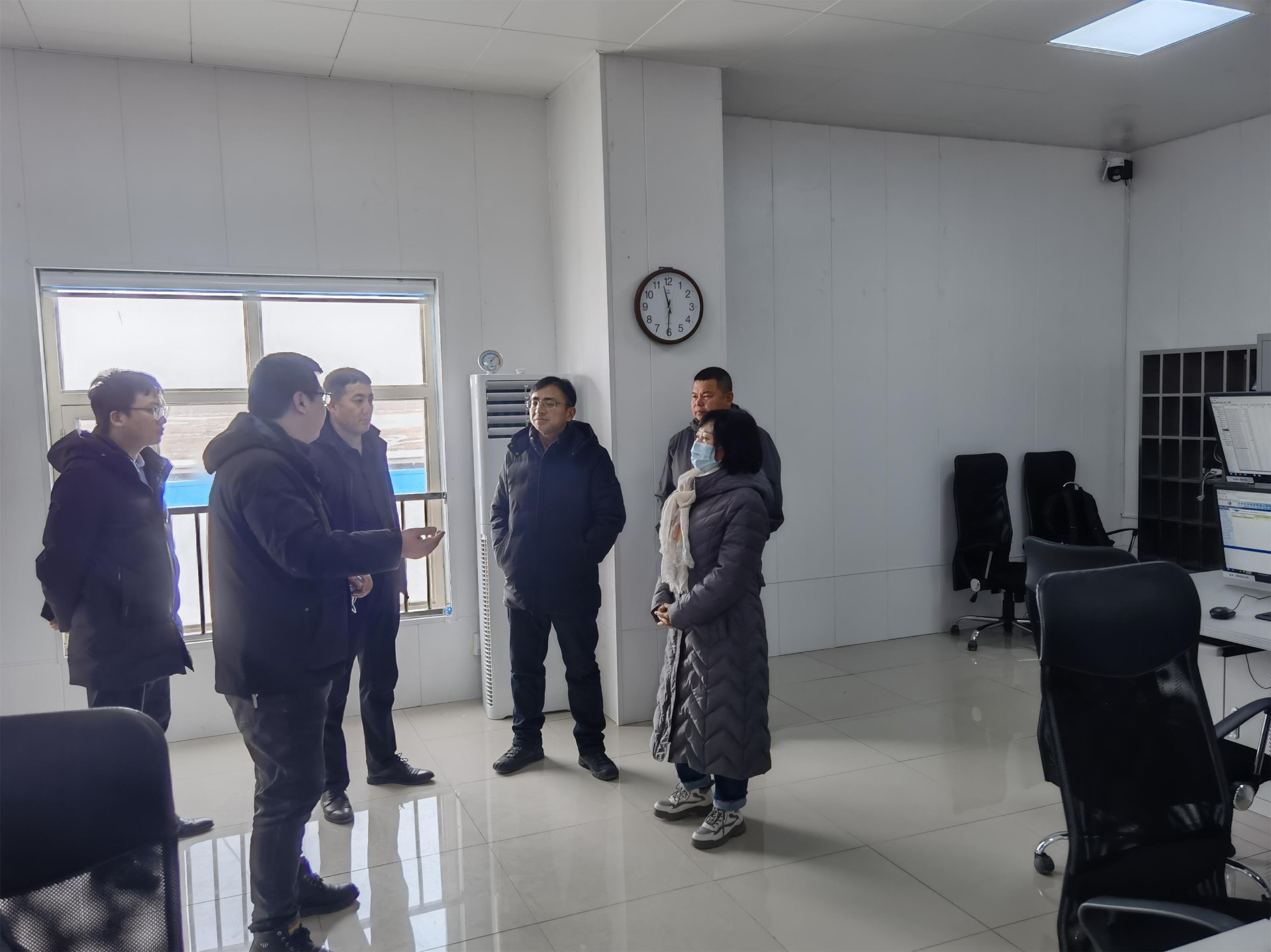 3月4日,吉林省白城市能源局副局長田秀華一行蒞臨水發龍海風電場視察調研,通榆縣能源局副局長王海波陪同。